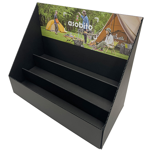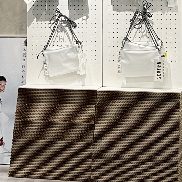 強化ダンボールを使用することで、木材並みに頑丈で地球にやさしく、経済的な什器を作成いたします。