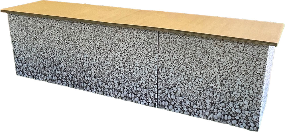 今年のメインは何と言っても再生砕石を印刷した長さ3mの展示台です。